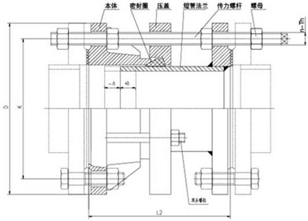 2.該產品采用金屬鑄造或焊接組成,松套部位選用梯形橡膠密封圈,在壓蓋和螺栓的作用下,利用橡膠壓縮彈性變形原理,迫使密封圈變形于接頭本體與伸縮管外壁之間進行靜密封。